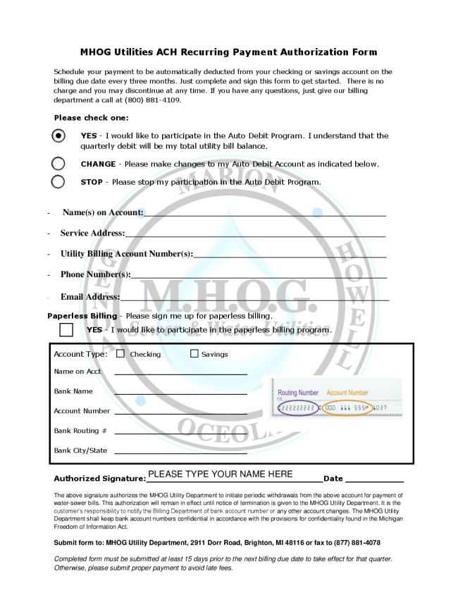 Release form, and (b) has fully read this authorization and release form and agrees to the terms set forth herein. Please know that existing charges will not draft. We are open monday through friday, 7:30 am to 5 pm. The authorization form is then sent to the contracting utility. Provides information related to billing and services. Please accept this letter as a formal request and authorization for the above referenced tdsp to release energy usage data, including kwh, kva or kw, and interval data (if applicable) at the following location (s) to national utility. This authorization to act on my behalf will begin on october 1, 20xx, and end on october 25, 20xx, during which time i shall be away in europe on business. People use automatic payments set up with a merchant or other service provider to pay bills and other recurring payments from their bank or credit union accounts. To 5 p.m., monday through friday, to speak with a customer. Direct payment (autodraft from bank account) is an authorization for your financial institution to pay your utility bill from your checking or savings account. The payments will be charged at the end of each bill's, billing cycle. As such, the usm must be used for the design of all public water and sewer system components in service areas under the service authority's jurisdiction. Critical care list approval request.